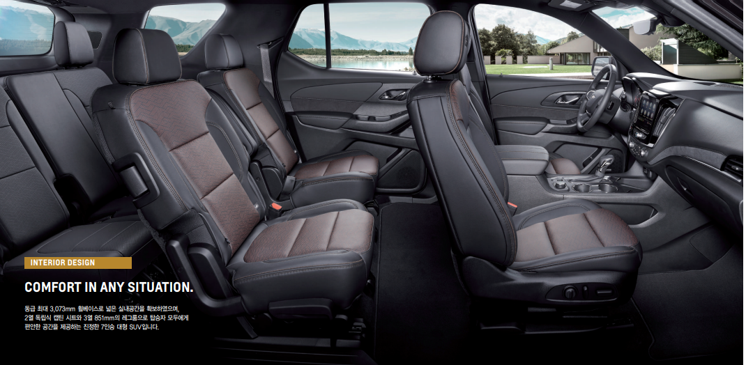 쉐보레 트래버스는 대형 suv 답게 실내공간도 매우 넓습니다.