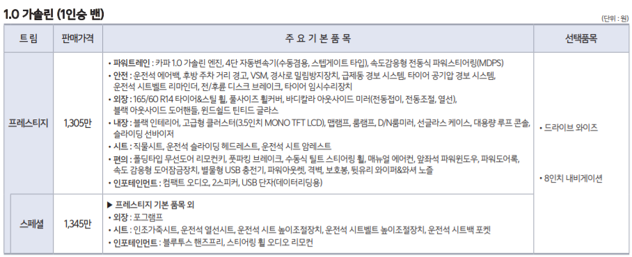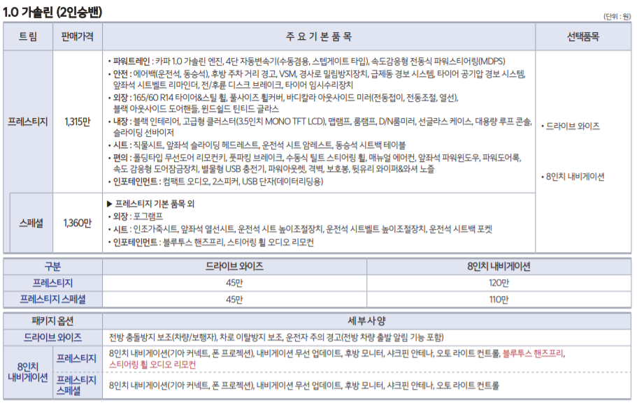 각각의 트림별 가격, 옵션을 살펴보겠습니다.