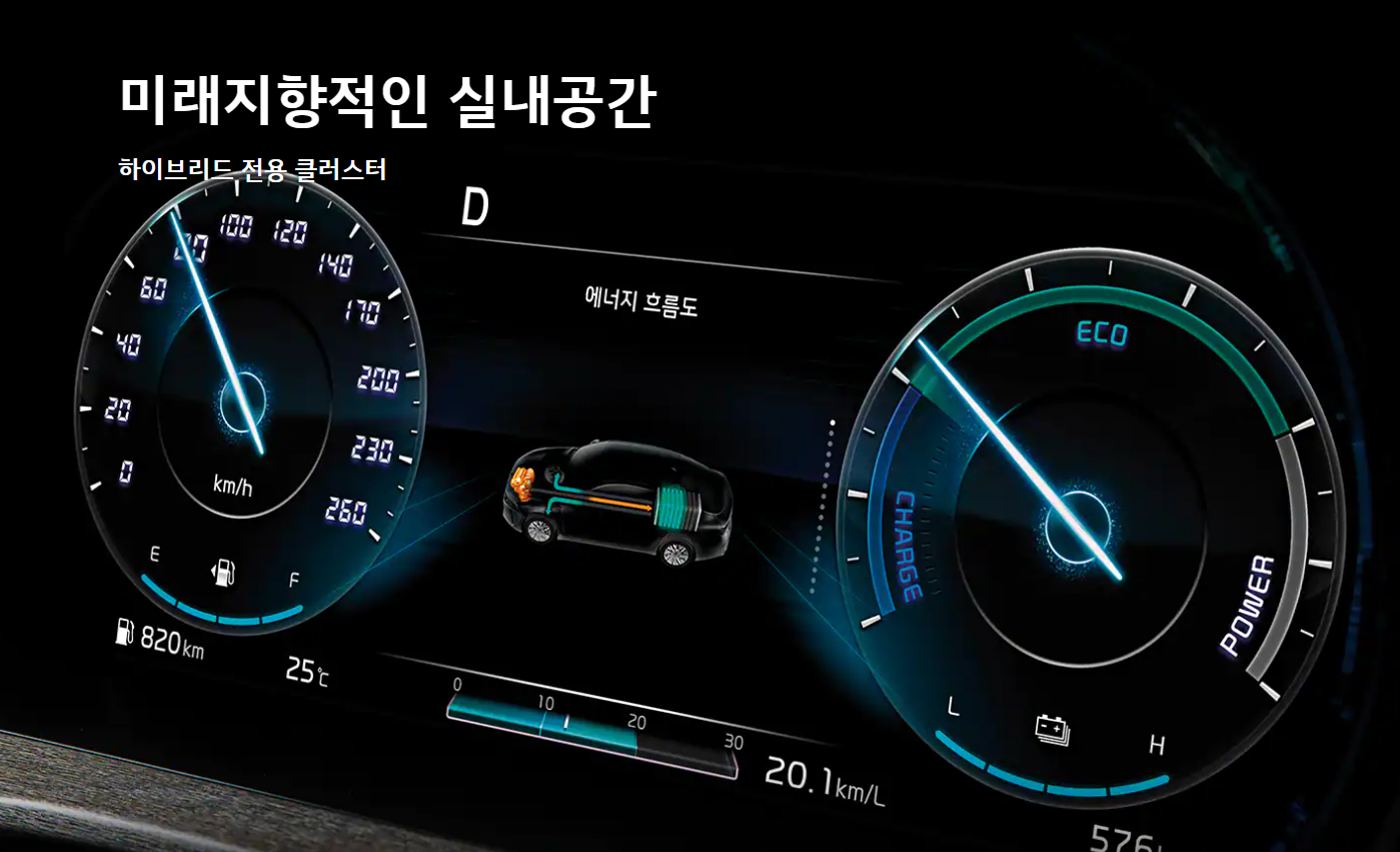 20km/l 연비는 중형 세단 k5 하이브리드의 가장 큰 매력입니다.