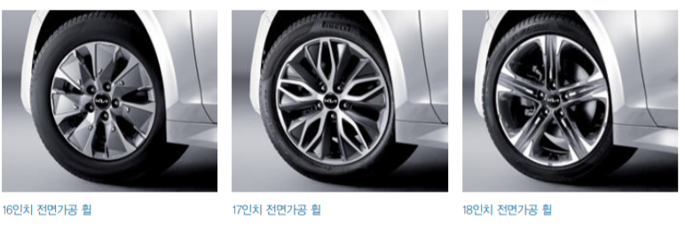 16인치 휠, 17인치 휠, 18인치 휠로 사양에 따라서 휠 선택이 가능합니다.