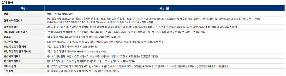캐스퍼 스마트 기본 품목 포함 이외
