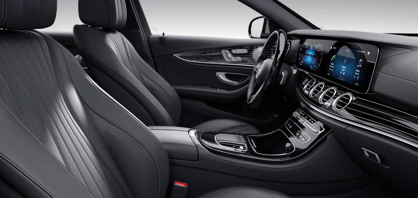 e클래스는 밝은 색상의 실내 디자인이 화려해 보이며, 블랙 색상의 시트는 유지가 편할 것으로 예상됩니다.