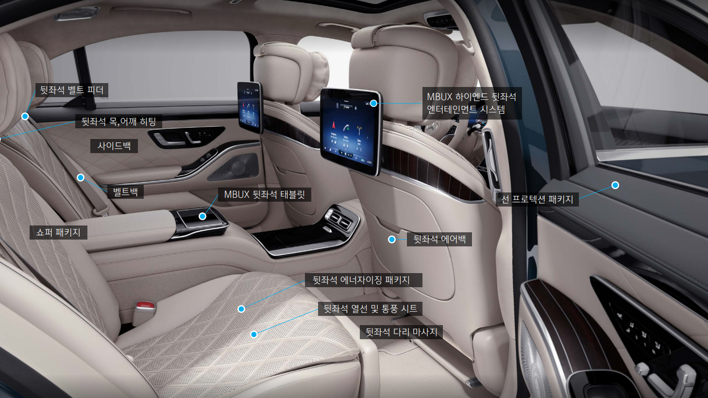 s클래스 실내 공간은 비행기 일등석 못지않은 느낌을 전달합니다.