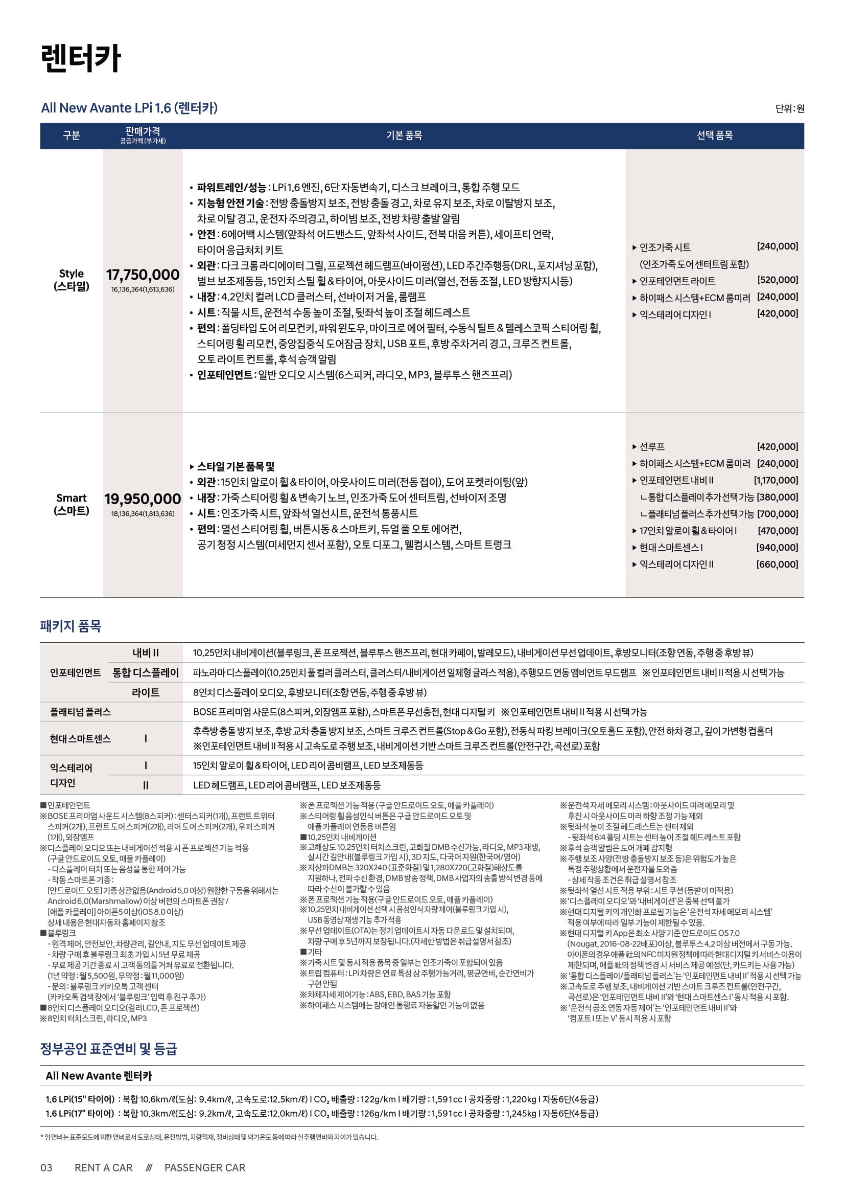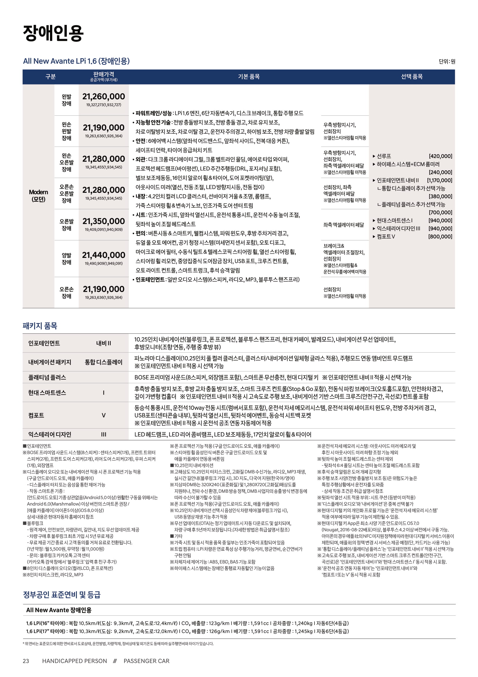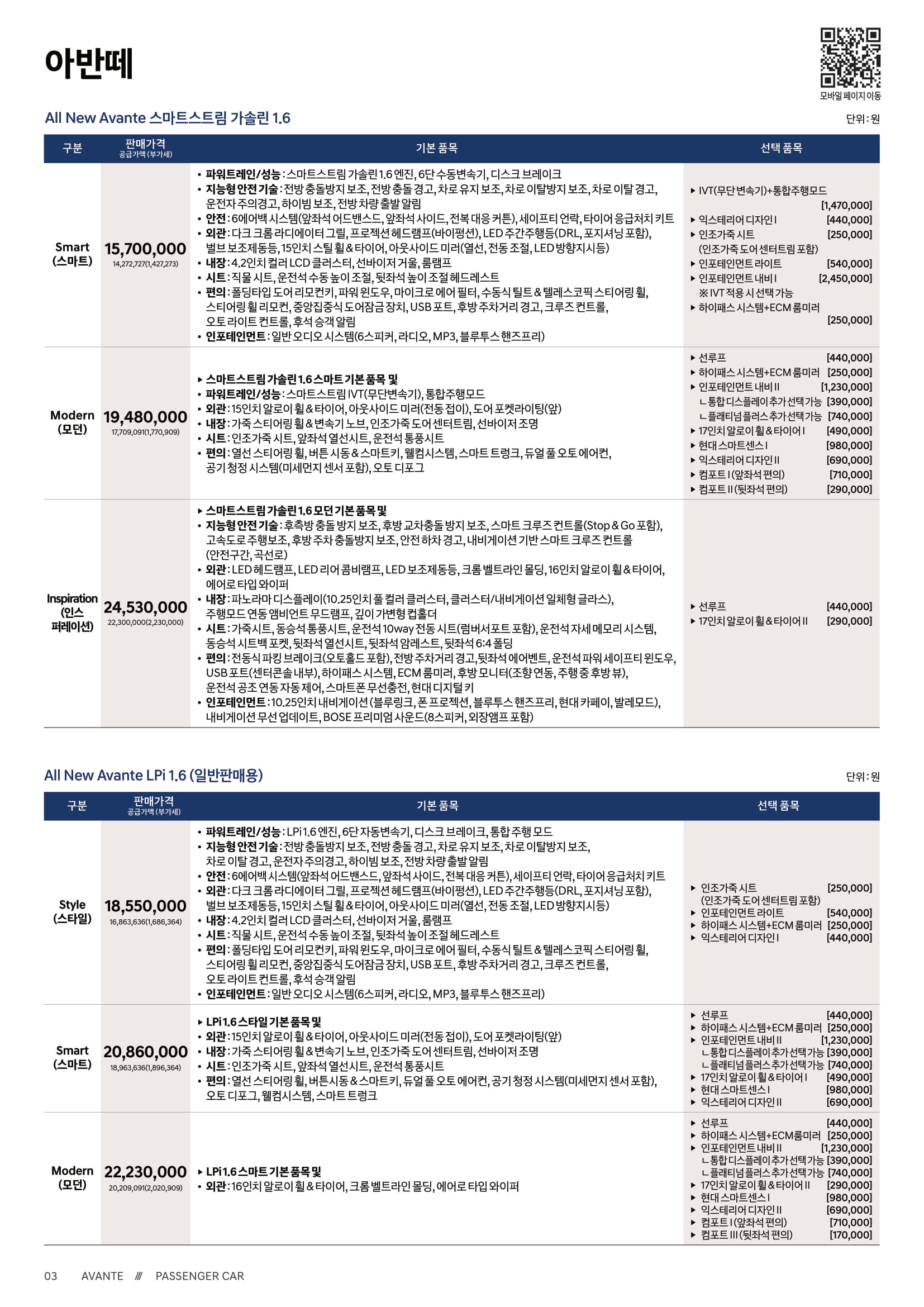 아반떼 lpi가격도 포함된 가격 카탈로그