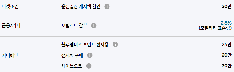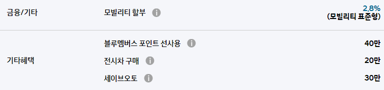 또한 모빌리티 할부를 통해 최저 2.8%의 금리로 할부 구매가 가능합니다.