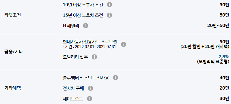 현대자동차 7월 차종별 판매조건, 구매 혜택