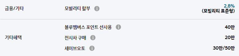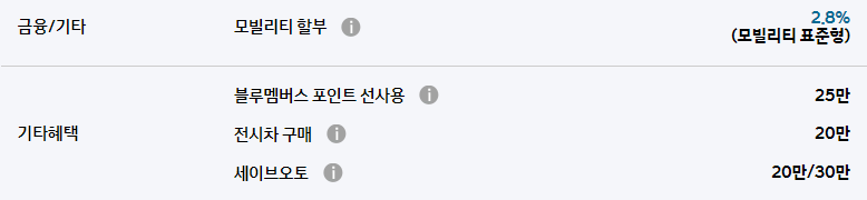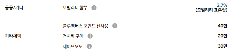 또한 모빌리티 할부를 통해 최저 2.8%의 금리로 할부 구매가 가능합니다.