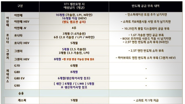 현대자동차 7월 납기 일정 알아보기