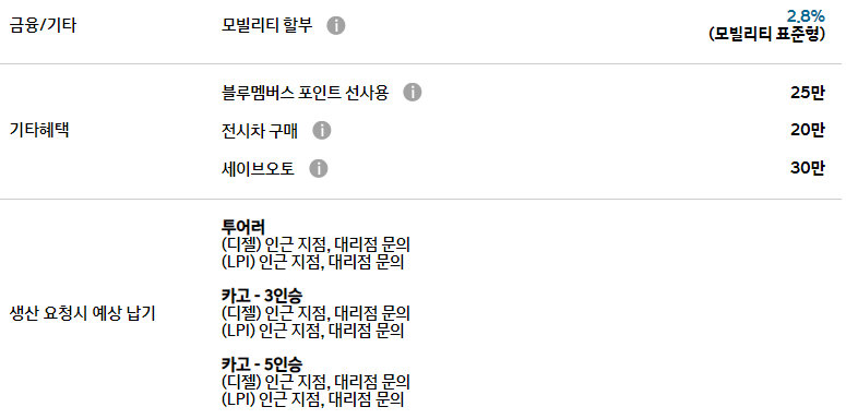 현대자동차 출고 지연 현상이 심해 대부분의 차종에 프로모션이 제공되지 않습니다.