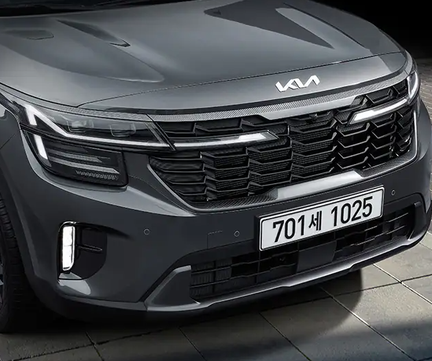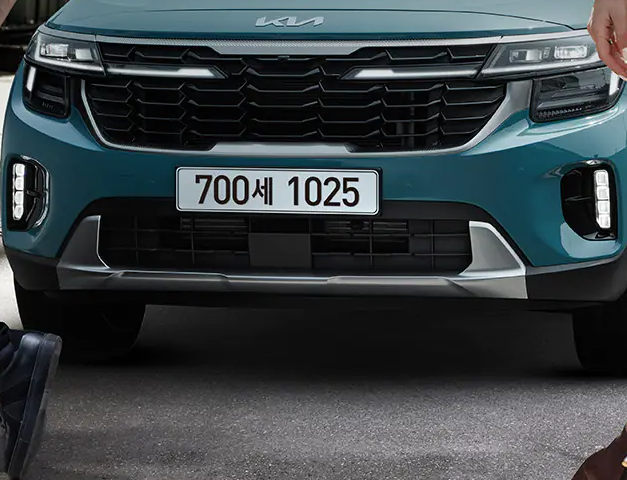신형 셀토스의 외관 특징 중 하나는 다크메탈 마감재를 활용한 것입니다. 블랙색상의 라디에이터 그릴과 스키드 플레이트는 강인한 모습을 전달합니다.