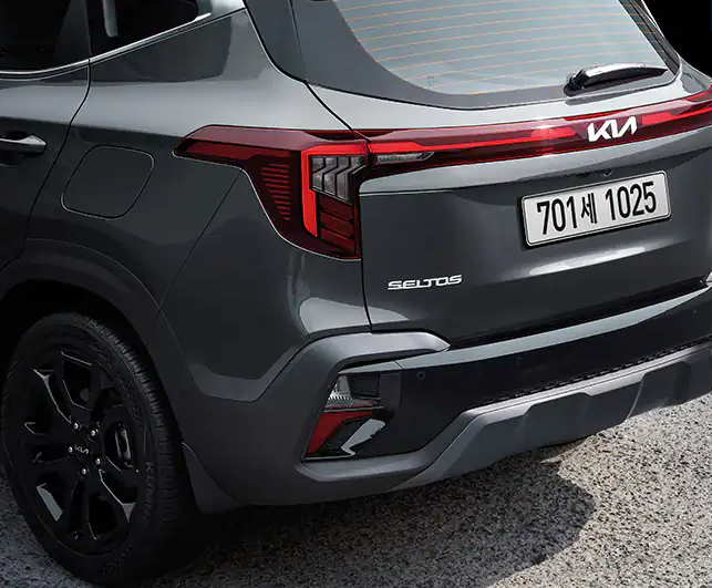 셀토스 페이스리프트 모델 외관 디자인은 새로운 디자인이 적용되었습니다. 특히, 셀토스 후면 디자인은 완전히 변경된 모습으로 가로형태의 긴 테일램프가 안정감 있는 모습을 보여줍니다.