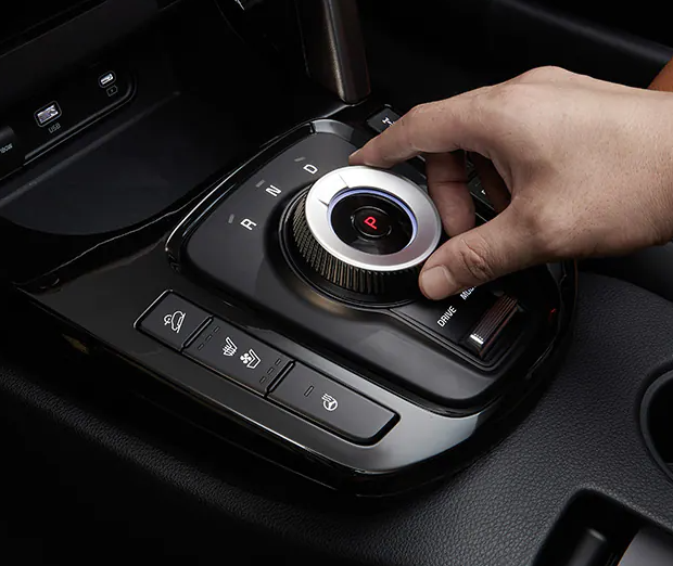 전자식 변속 다이얼도 적용되어 직관적으로 변속을 할 수 있으며 깔끔한 모습의 센터패시아 모습을 보여줍니다.