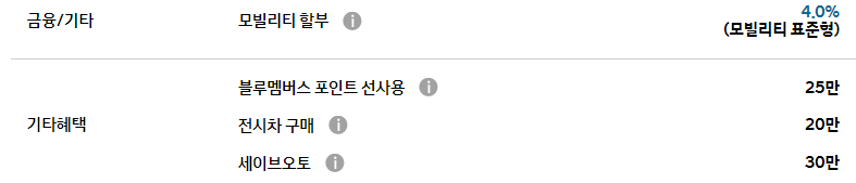 팰리세이드는 모빌리티 할부, 세이브 오토, 포인트 선사용의 기본적인 혜택만 제공되고 있습니다.