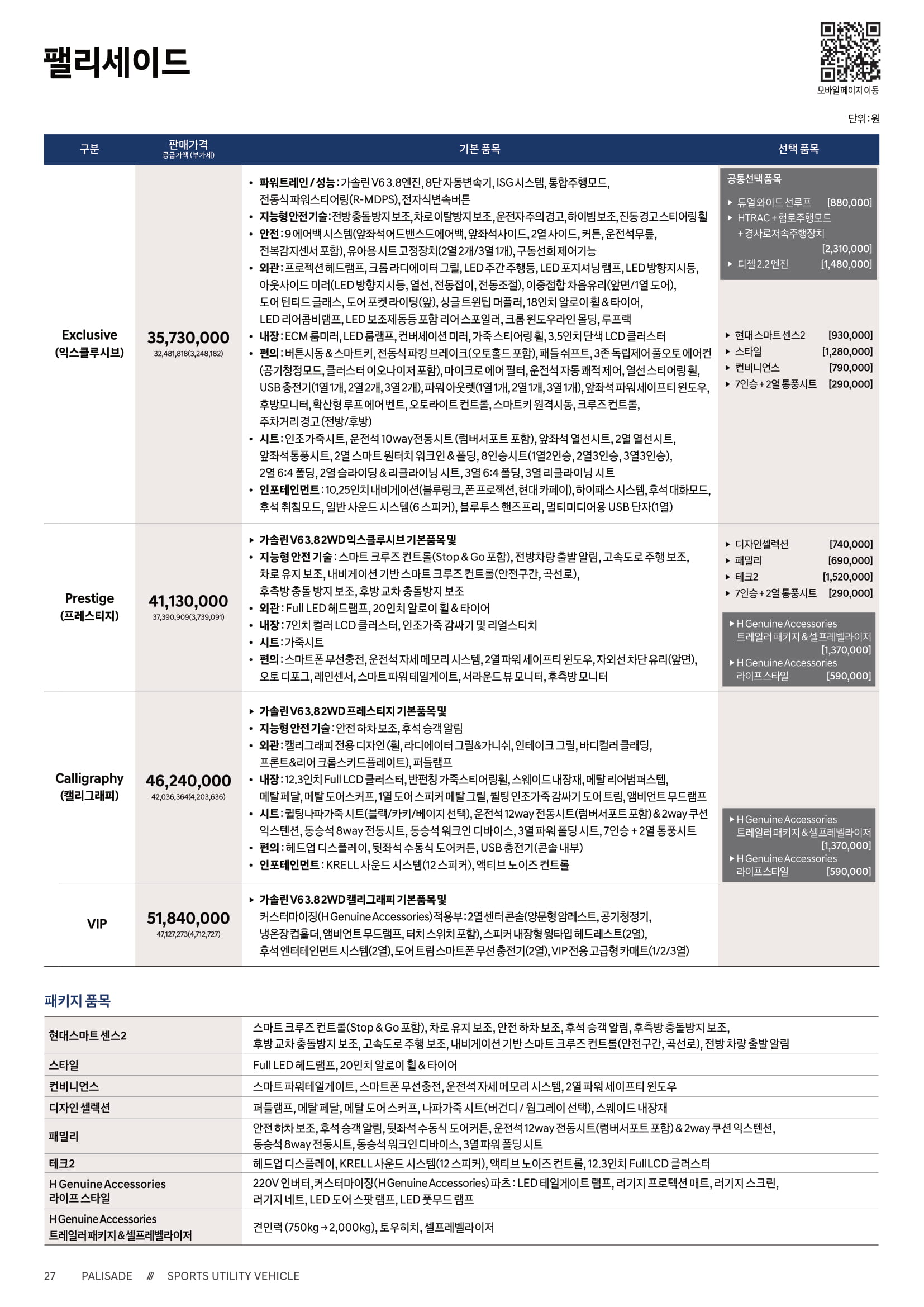 [현대] 2021 펠리세이드 옵션, 가격, 가격표