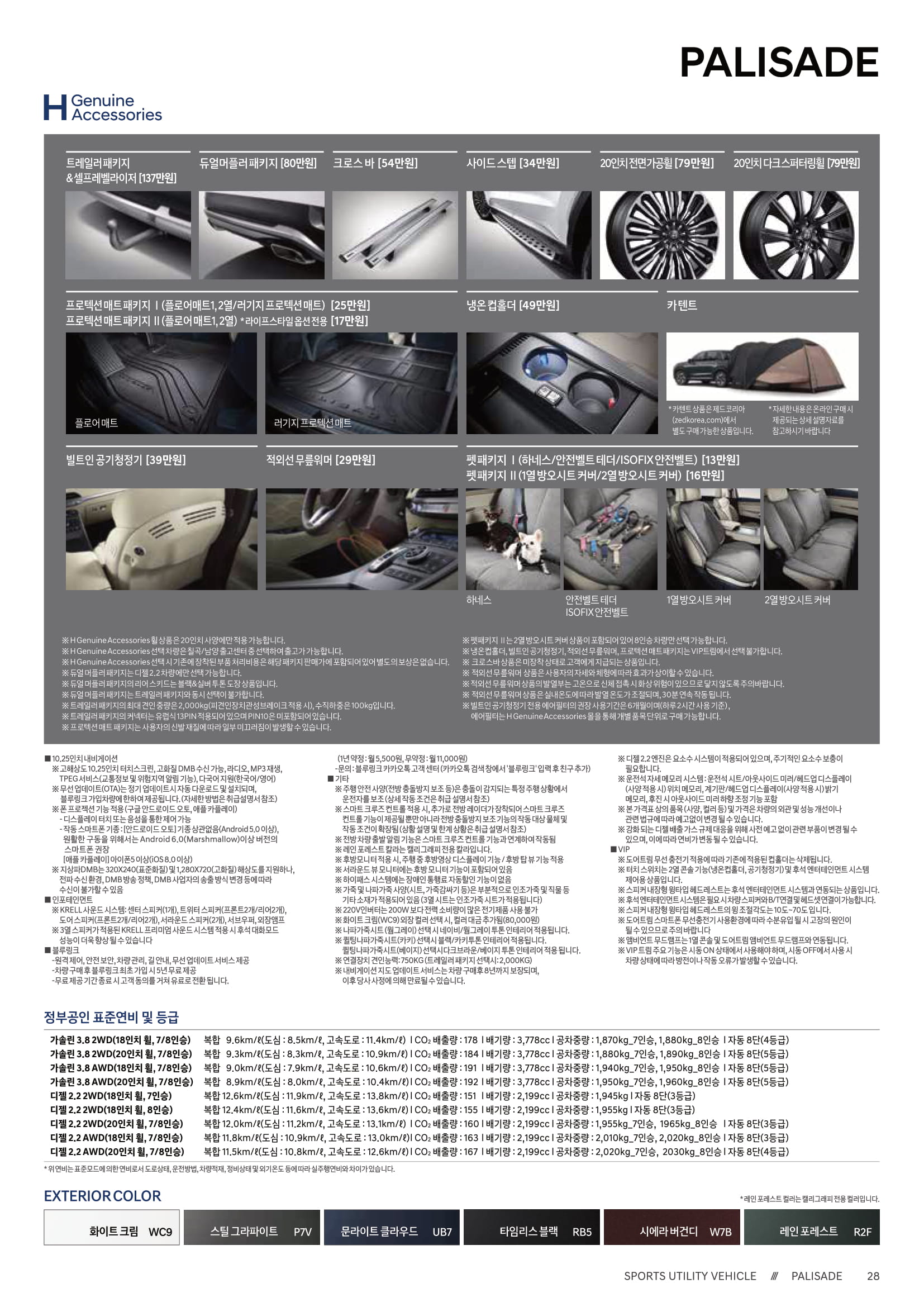 커스터마이징(H Genuine Accessories) 적용부 : 2열 센터 콘솔(양문형 암레스트, 공기청정기, 냉온장 컵홀더, 앰비언트 무드램프, 터치 스위치 포함), 스피커 내장형 윙타입 헤드레스트(2열), 후석 엔터테인먼트 시스템(2열), 도어 트림 스마트폰 무선 충전기(2열), VIP 전용 고급형 카매트(1/2/3열)