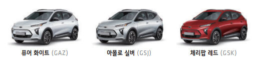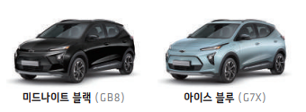 쉐보레 볼트 euv 외관 색상은 5가지 색상이 존재합니다.
