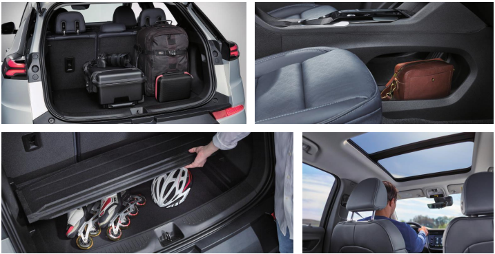 대용량 트렁크 공간으로 충분한 적재 공간을 보여주며, 파노라마 선루프가 적용되어 개방감이 매우 뛰어납니다.