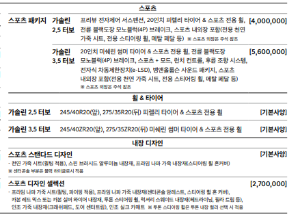 엔진이나 구동 타입, 디자인 옵션을 추가하게 되면