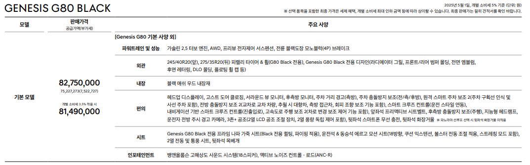 g80은 블랙 모델을 별도로 판매하고 있습니다.