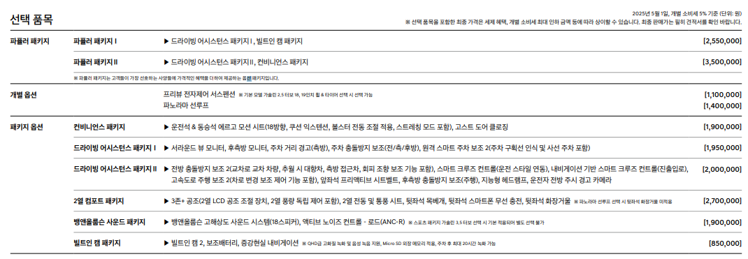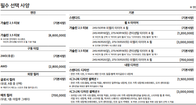 엔진이나 구동 타입, 디자인 옵션을 추가하게 되면