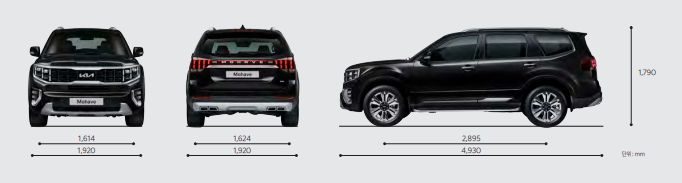 전면, 측면, 후면의 외관 디자인은 기존 모하비와 비슷한 디자인입니다.