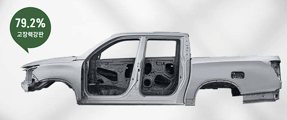 국내 최대 수준의 초고장력 강판이 적용된 렉스턴 스포츠 차량입니다.