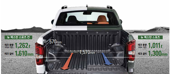 뉴 렉스턴 스포츠 기준으로 1,011L의 데크 용량을 확보하였습니다.
