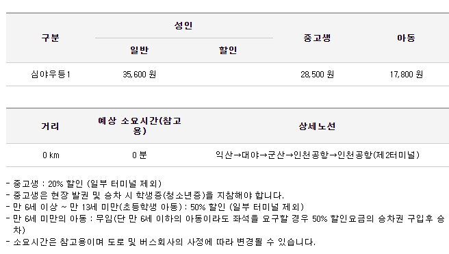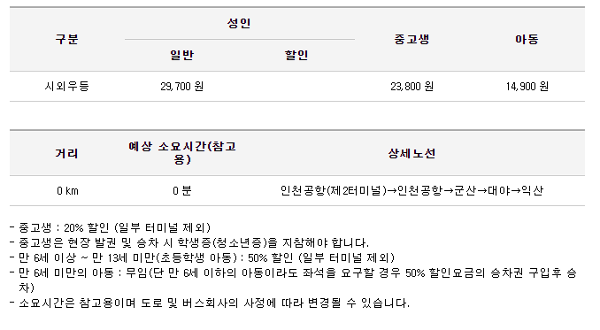 군산 인천공항 리무진 요금