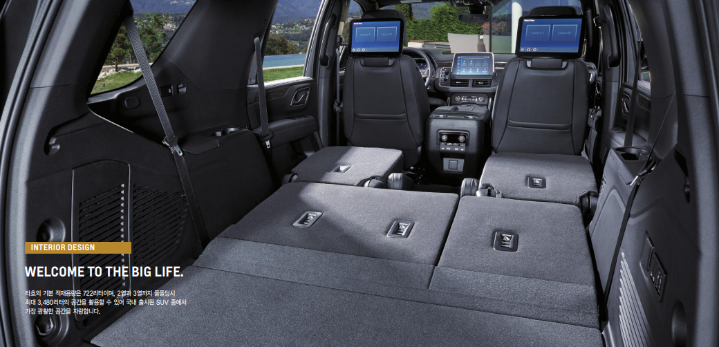 쉐보레 타호 트렁크 용량도 큰 자랑거리입니다. 2열, 3열 모두 폴딩 시 3,480리터의 공간을 활용할 수 있습니다.
