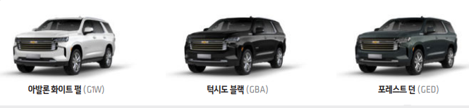 쉐보레 대형 suv 타호는 세 가지 색상 중 선택하여 구매가 가능합니다.