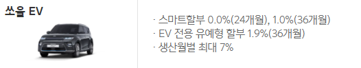 24개월 할부 시 0%, 36개월 할부 시 1.0%의 혜택을 제공하고 있죠.