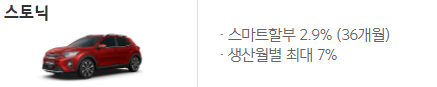 스토닉의 경우 재고차량에 최대 7%의 할인을 해줍니다.