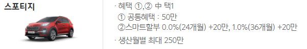 스포티지는 기본적으로 50만 원 할인이 제공됩니다.