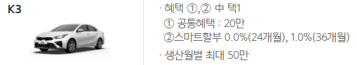 k3의 경우 공통 혜택으로 20만 원의 할인을 제공합니다.