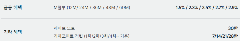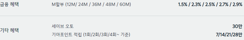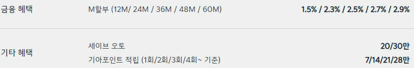 - M할부 적용 시 공통 혜택 금액이 차감될 수 있으며, 차감 금액은 차종마다 상이합니다.