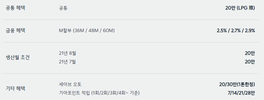 - 차종 및 대상 고객별 우대조건은 지점 및 대리점에 문의하시기 바랍니다.