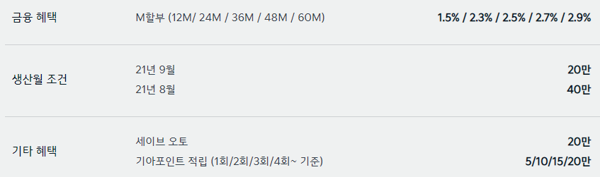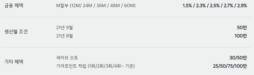 기아자동차 11월 판매조건, 구매 혜택 정보(2021)