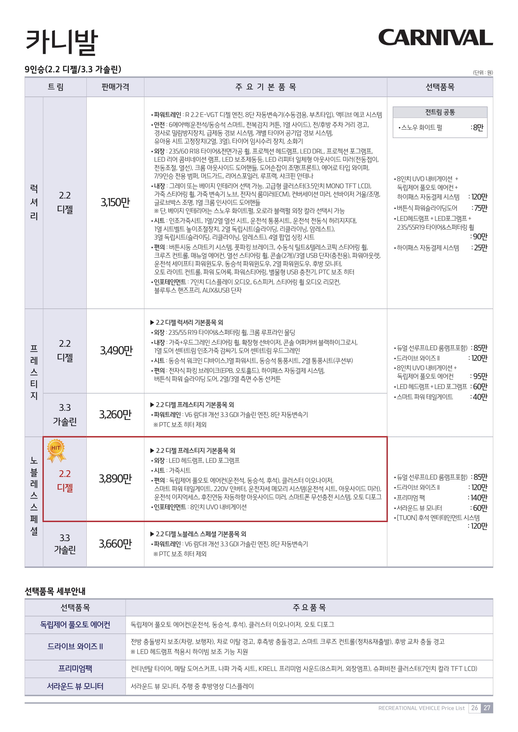 9인승은 위와 같이 가솔린/디젤 총 세가지 트림으로 나누어져 있습니다.