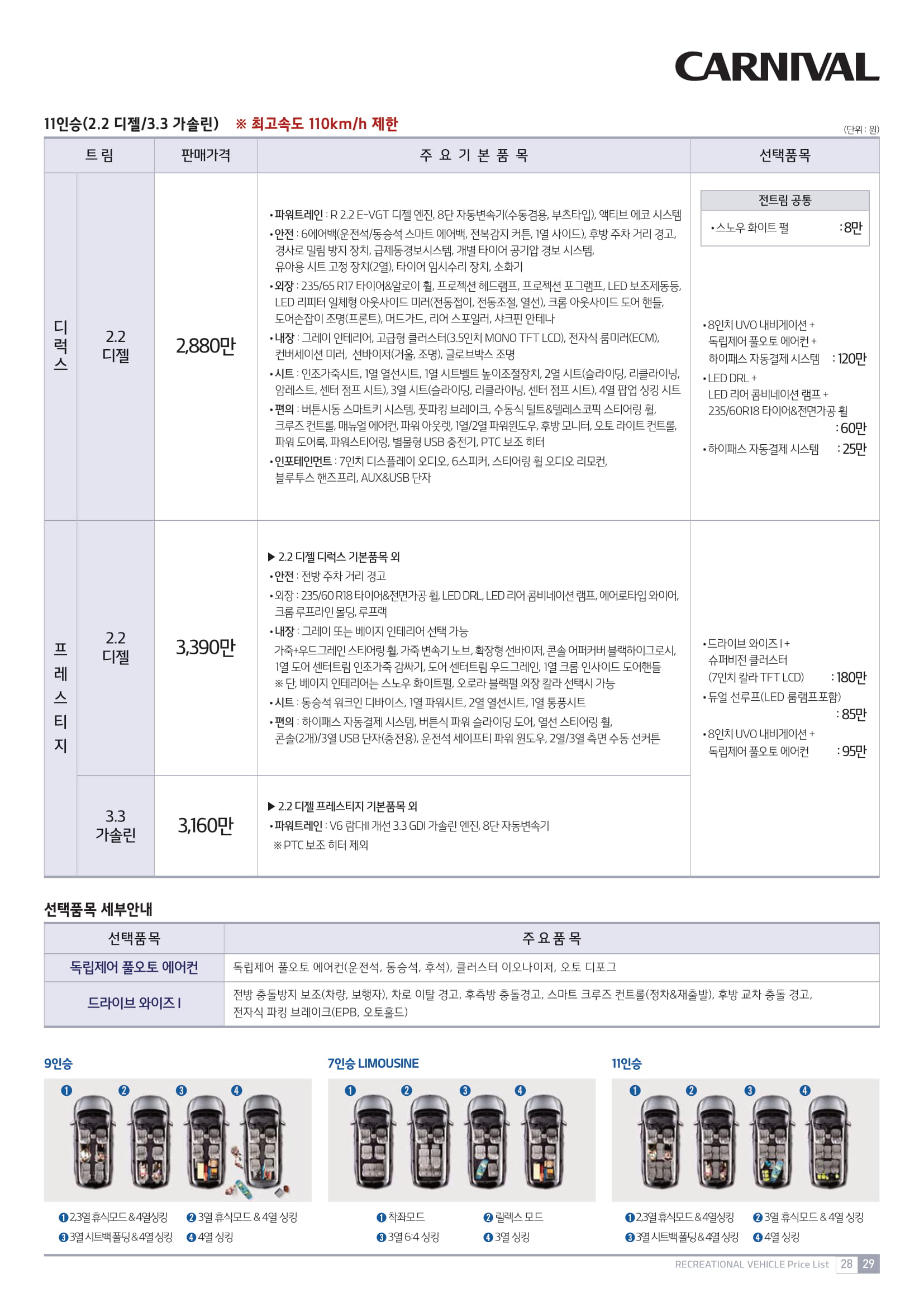 11인승는 디럭스와 프레스티지 모델이 있구요