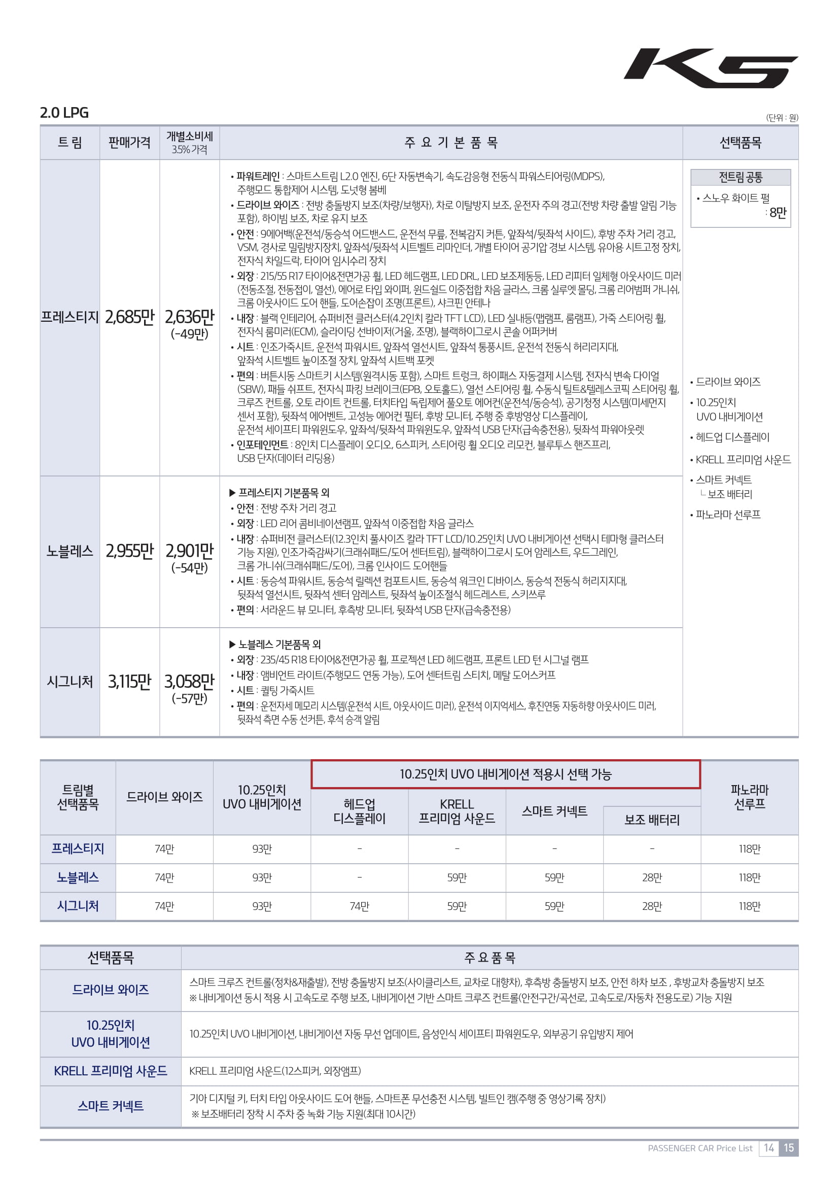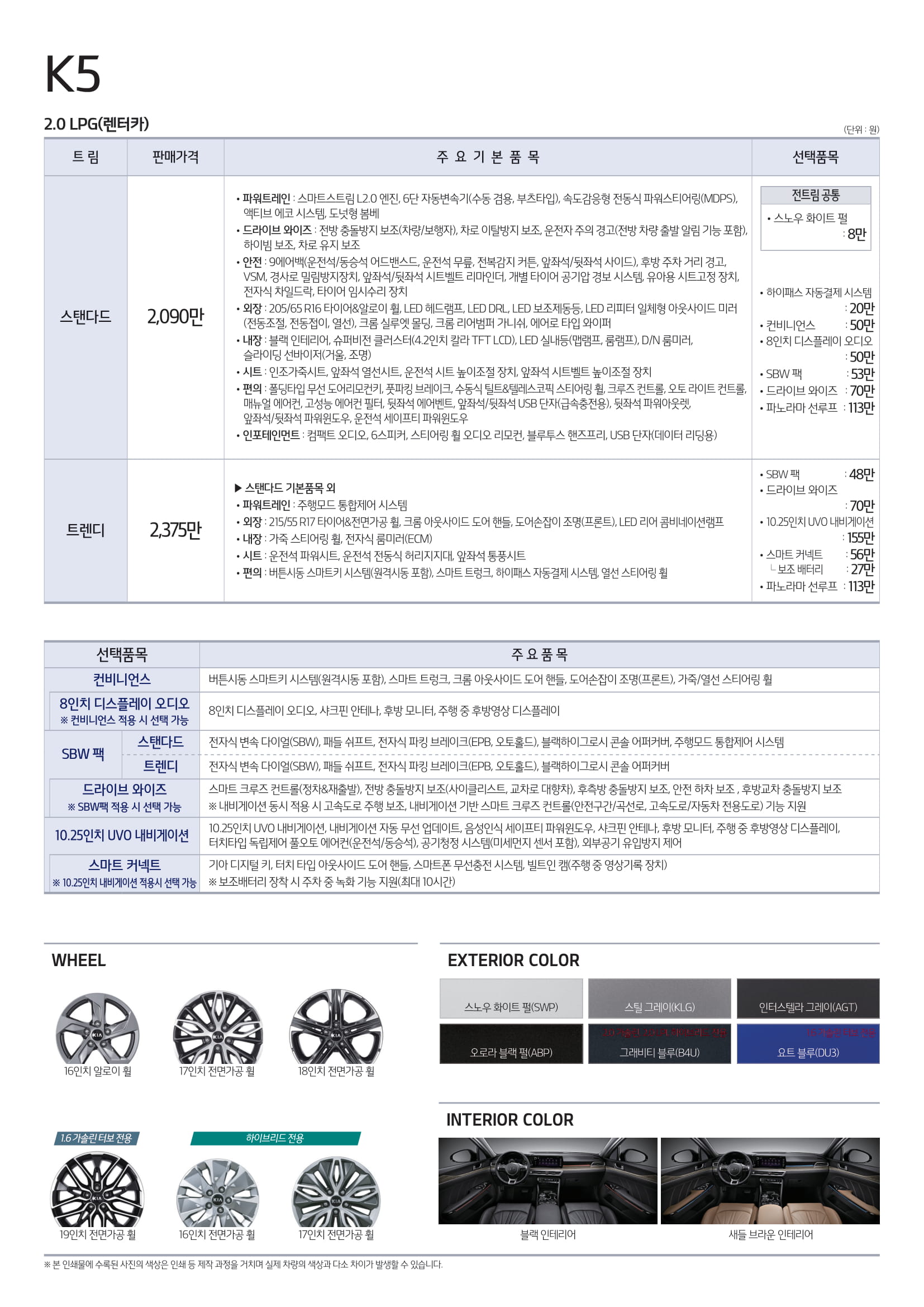 k5 lpi, 가스차 기아에서 제공하는 카탈로그 가격표 살펴보고 마치겠습니다.