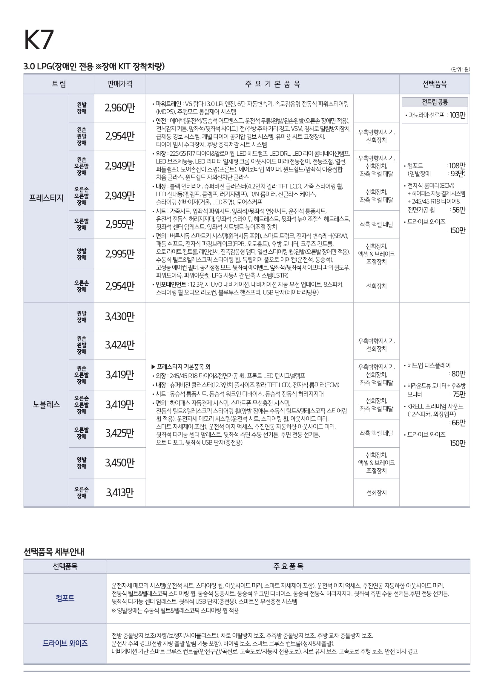k7은 택시 모델과 장애인 모델을 예전부터 운영했던 만큼 lpi 트림도 다양한데요
