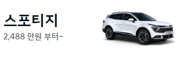 스포티지는 새롭게 출시된 suv 차량으로 인기를 얻으며 많은 판매량을 기록하고 있습니다. 스포티지는 인기 차량으로 구매 시 특별한 혜택은 제공되지 않습니다.