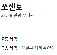 쏘렌토 및 카니발 9월 판매조건, 할인 혜택