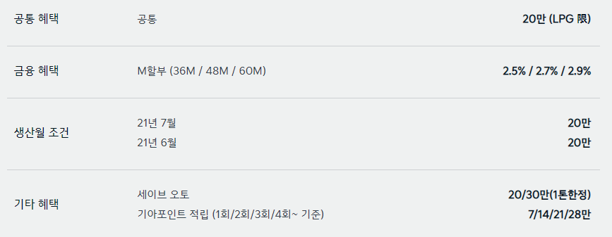 차종별로 제공되는 할인, 프로모션이 다르기에 기아차 구매를 고려하시는 분들은 잘 알아보시고 비교, 구매하시면 좋을 듯합니다. 감사합니다.
