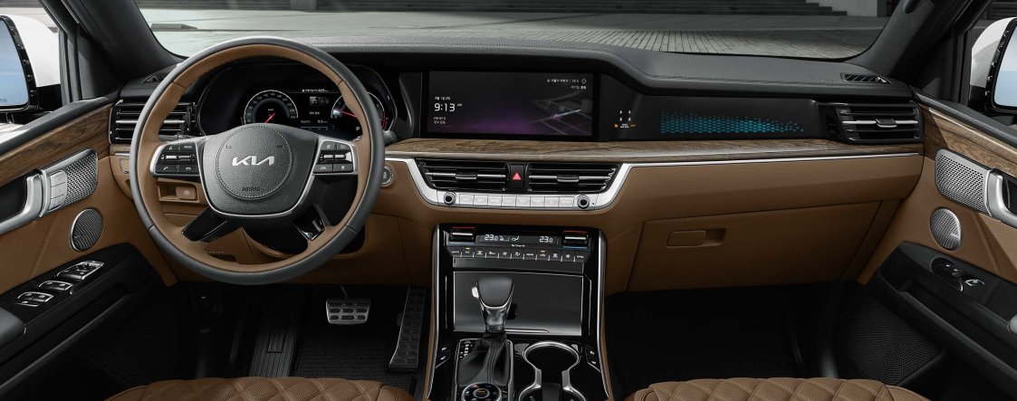 기아 대형 suv 모하비의 실내 디자인은 깔끔하고 세련된 디자인을 보여줍니다.