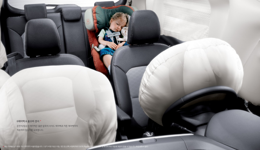 레이는 작은 차체임에도 어느 정도 안정성은 확보되었습니다. 6 에어백, 오버 센서를 통해 충돌 시 탑승객을 보호합니다. 또한 전방 충돌 방지 보조 기능, 직진 제동 쏠림 방지 시스템, 차체 자세 제어장치 등의 기능을 통해 안정적인 주행이 가능하도록 도와줍니다.