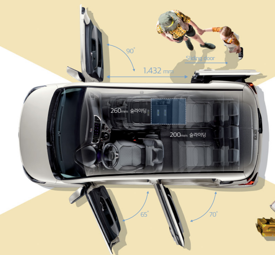 또한 레이는 조수석 b필러가 존재하지 않기에 조수석 문을 개방하였을 때 부피가 큰 물건도 충분히 적재할 수 있습니다.