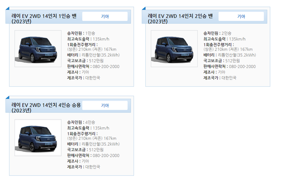 레이 EV 전기차 보조금