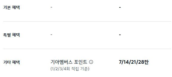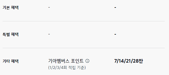 기본혜택, 특별혜택 없음