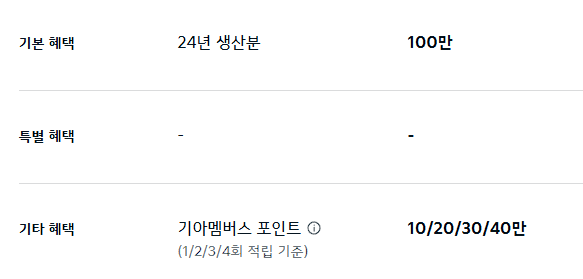 기타 혜택 - 기아 멤버스 포인트 최대 20만 원